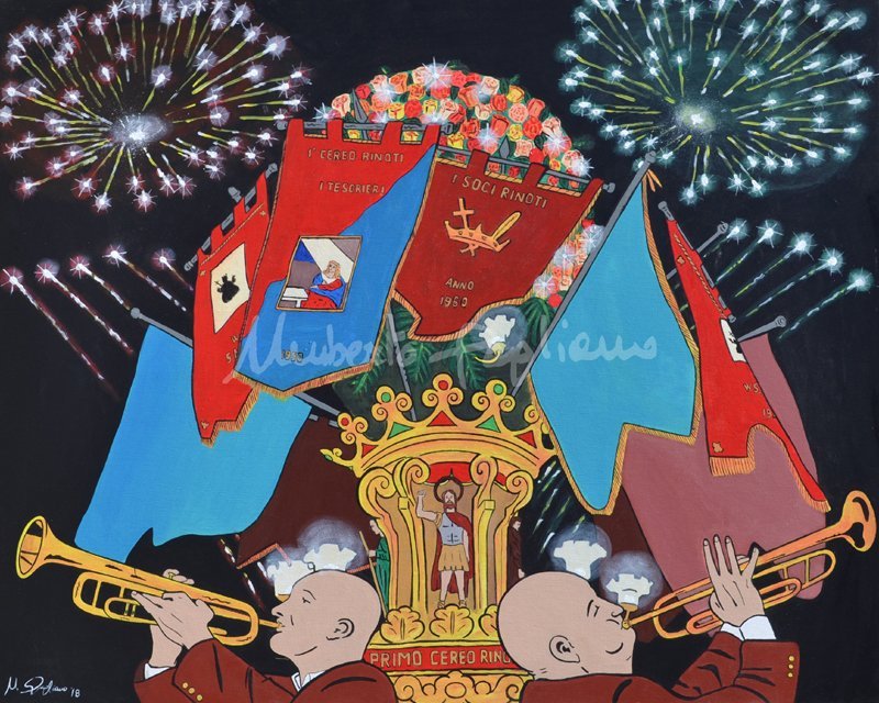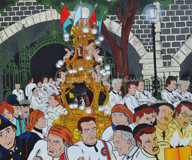 "Viva Sant'Agata" es una obra del proyecto, de 6 metros de largo y 1 metro de alto. Representé la procesión de las reliquias de Santa Águeda, colocadas en un fercolo tirado por los fieles con dos largas cuerdas. Entre los fieles, se pueden vislumbrar los rostros de ilustres sicilianos como Leonardo Sciascia y Andrea Camilleri.