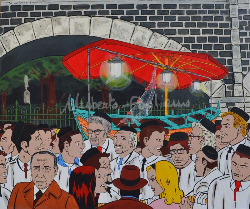 Así, en las obras encontramos a Alberto Sordi rodando “El arte de hacer”, a Marcello Mastroianni lidiando con “Il bell'Antonio” o incluso a Gina Lollobrigida ocupada con “Un bello noviembre”.