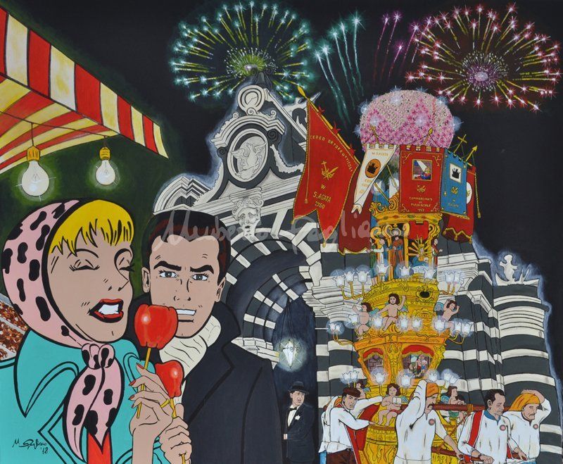 O artista, influenciado por autores como “Roy Lichtenstein”, expoente da Pop Art americana com técnicas de pontilhismo “Ben-Day”, dá origem a algumas obras de sua coleção “VIVA S.AGATA - CATANIA IN POP-ART”, em uma “mistura” entre personagens mais ou menos conhecidos dos quadrinhos e cenários da região onde vive.